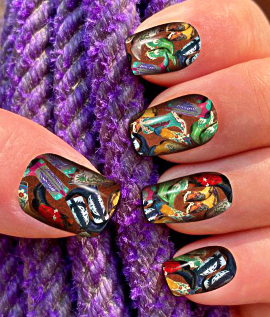 Darling western nail wraps, so easy to apply and last longer than polish! Just peel, stick to nail, fold over nail tip and file off the extra! Super cute and long lasting. Made with real nail polish! Something new for Weathered Soul. Rodeo retro nail polish wraps, long last Easy application, pairs nicely with a beautiful piece of turquoise jewelry!