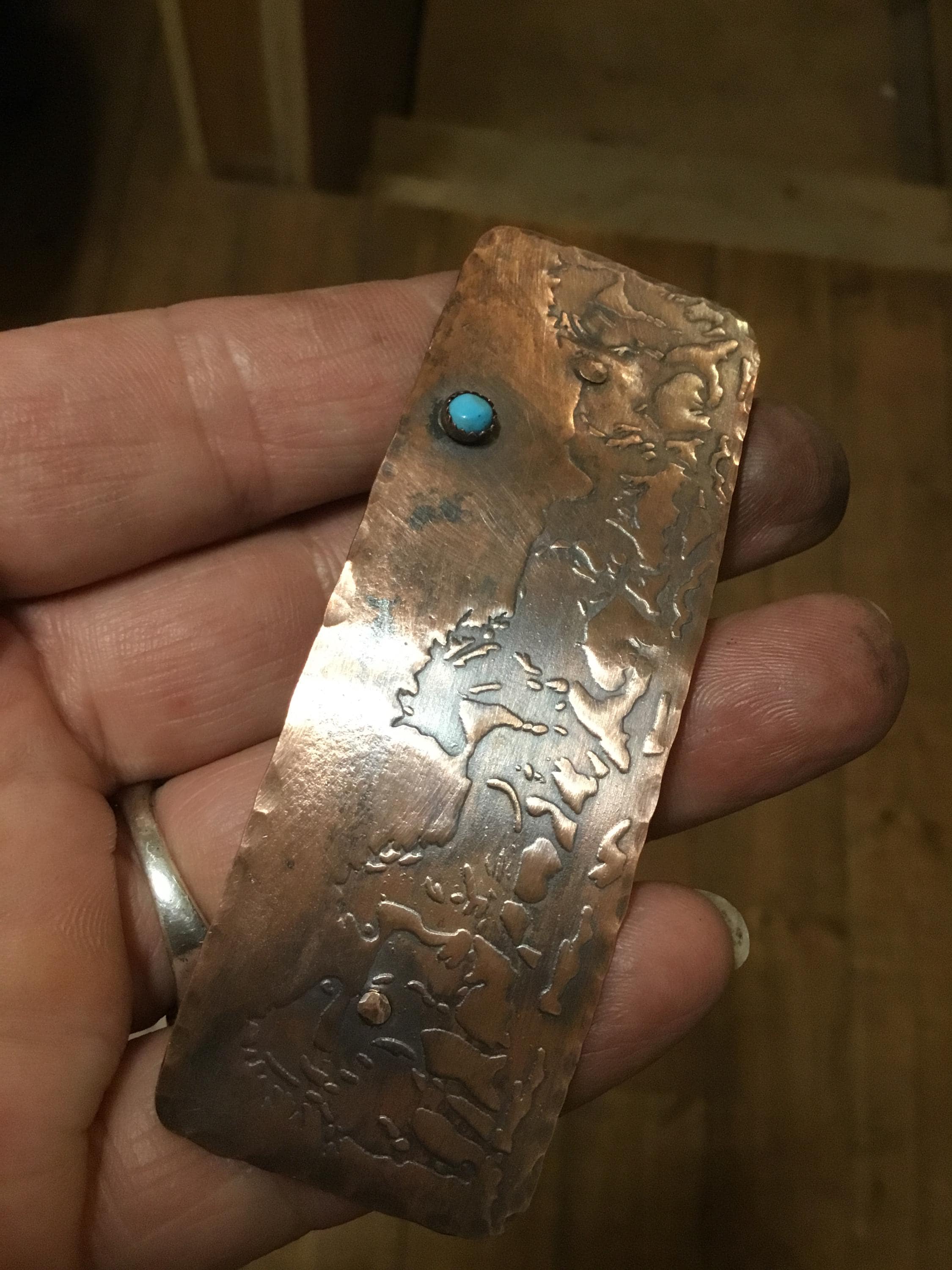 MADE to ORDER Running horse barette by Weathered Soul Copper with Kingman turquoise
