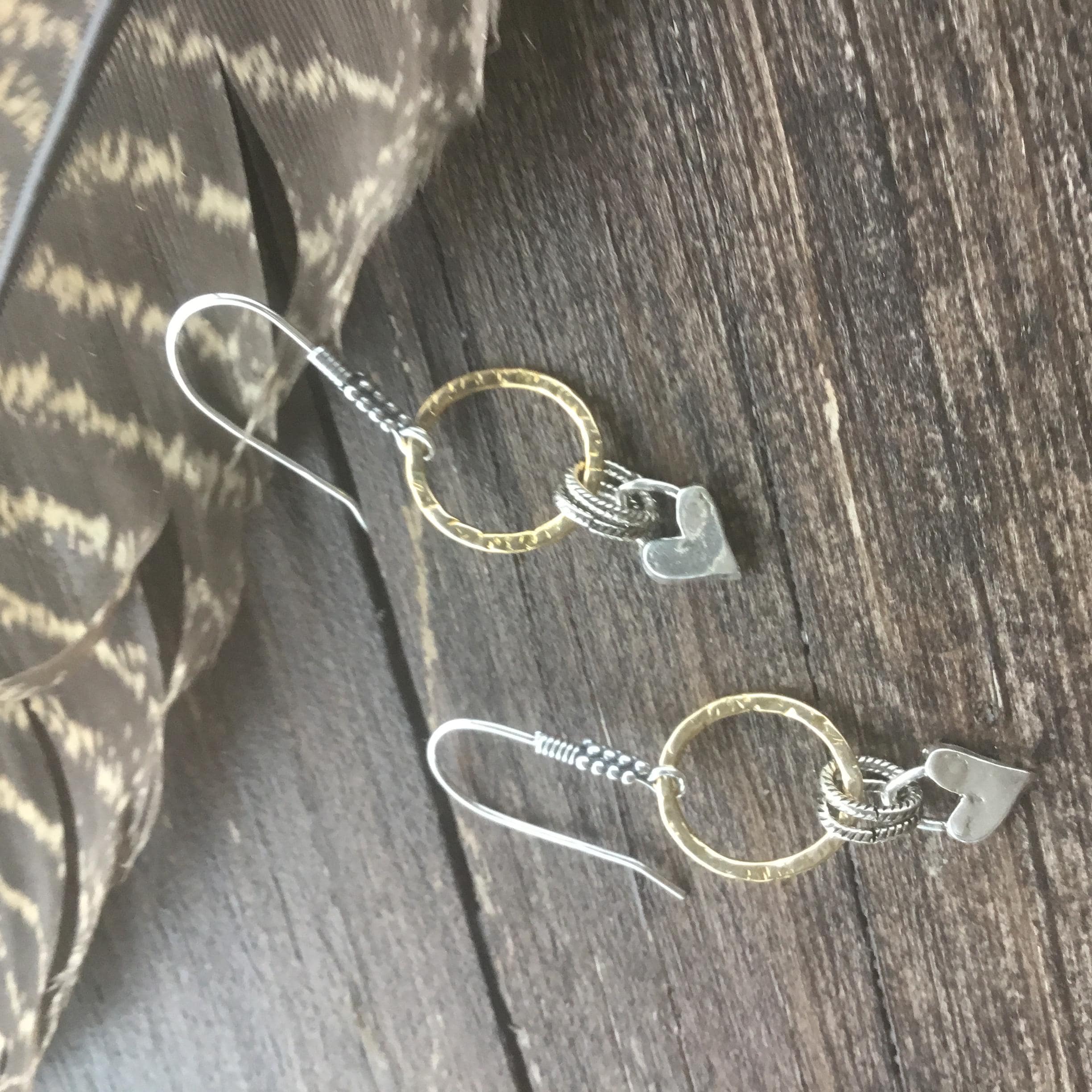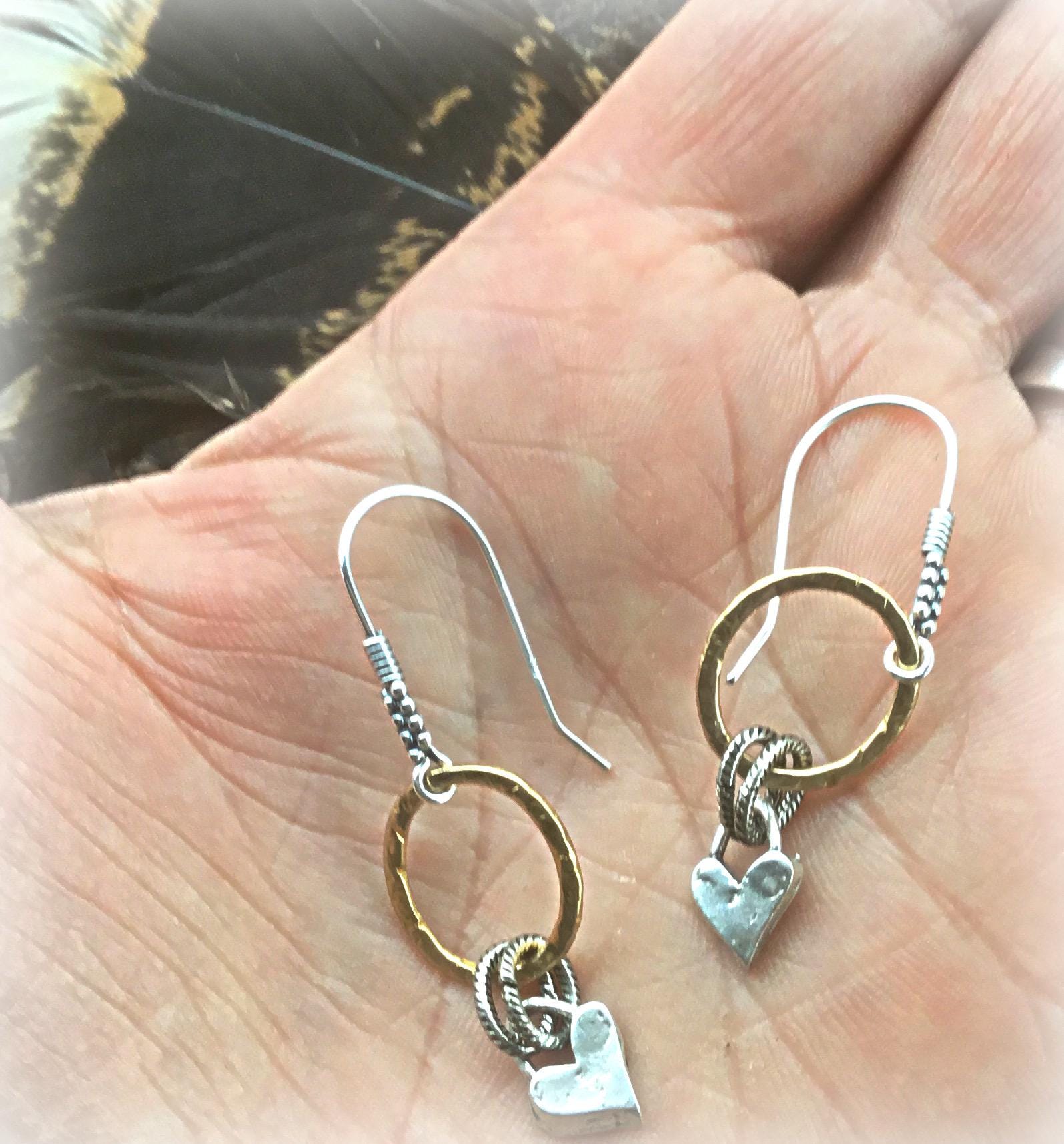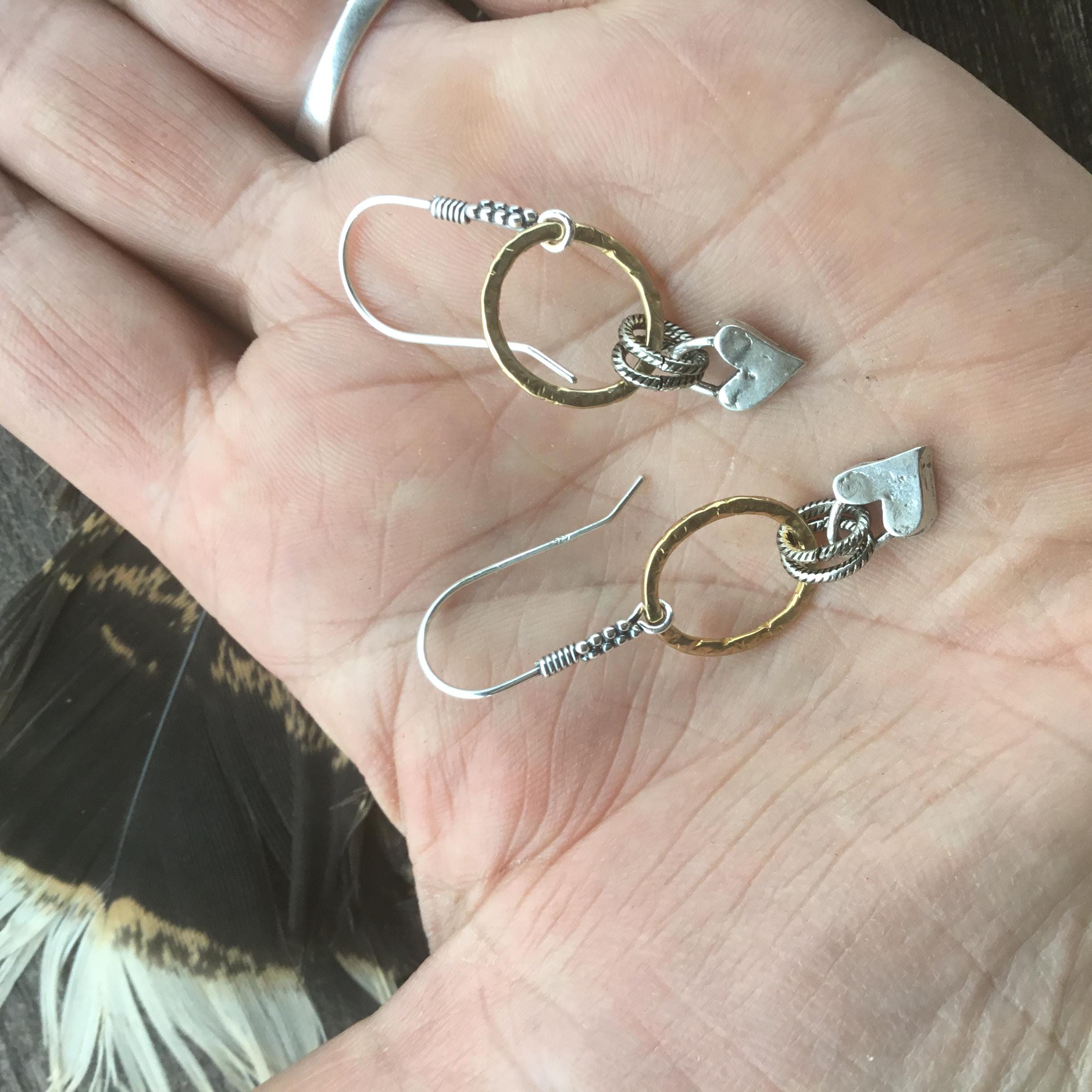 Be still my heart hoops just in time for Valentines Day! Sweet little dainty bronze and sterling hoop earrings by Weathered Soul. Details galore in the ear wires and hammered hoops. Won’t you be mine?