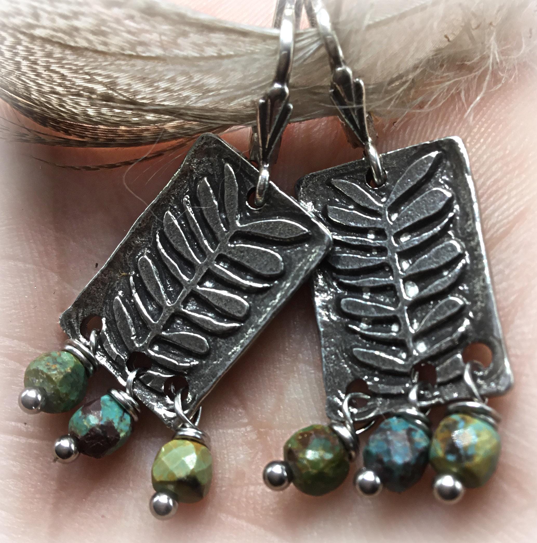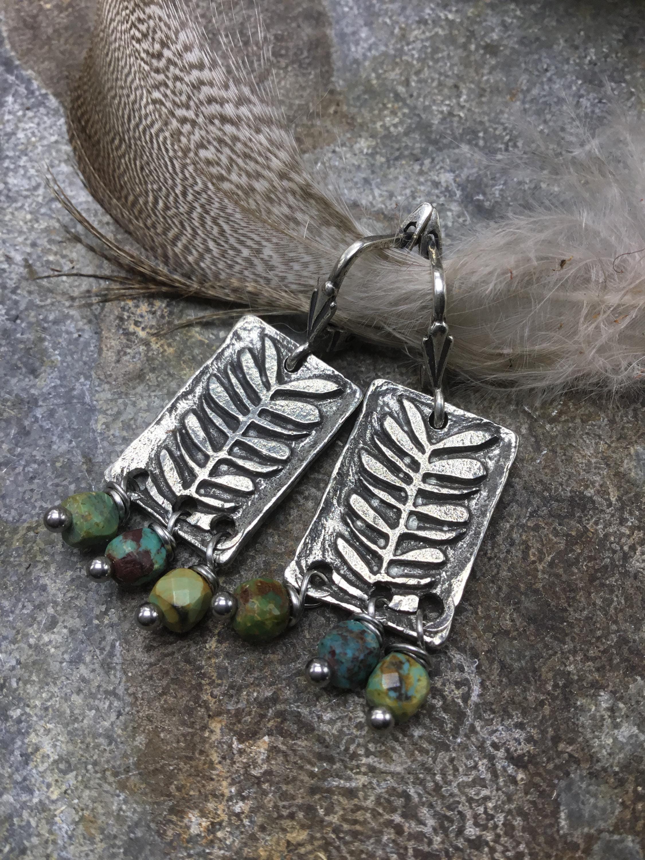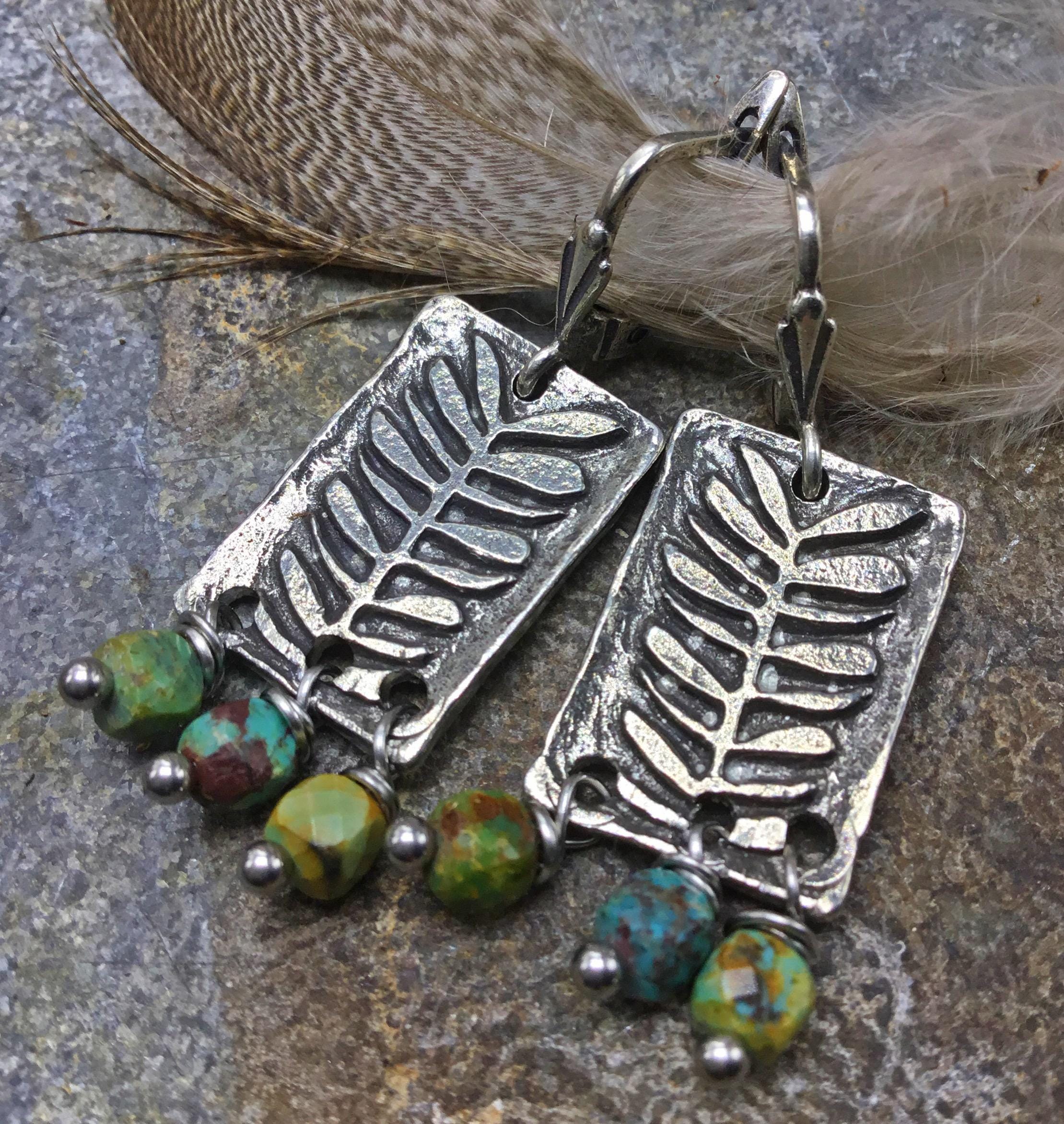 Loving nature earrings by Weathered soul artisan fern and turquoise drop earrings with French clips