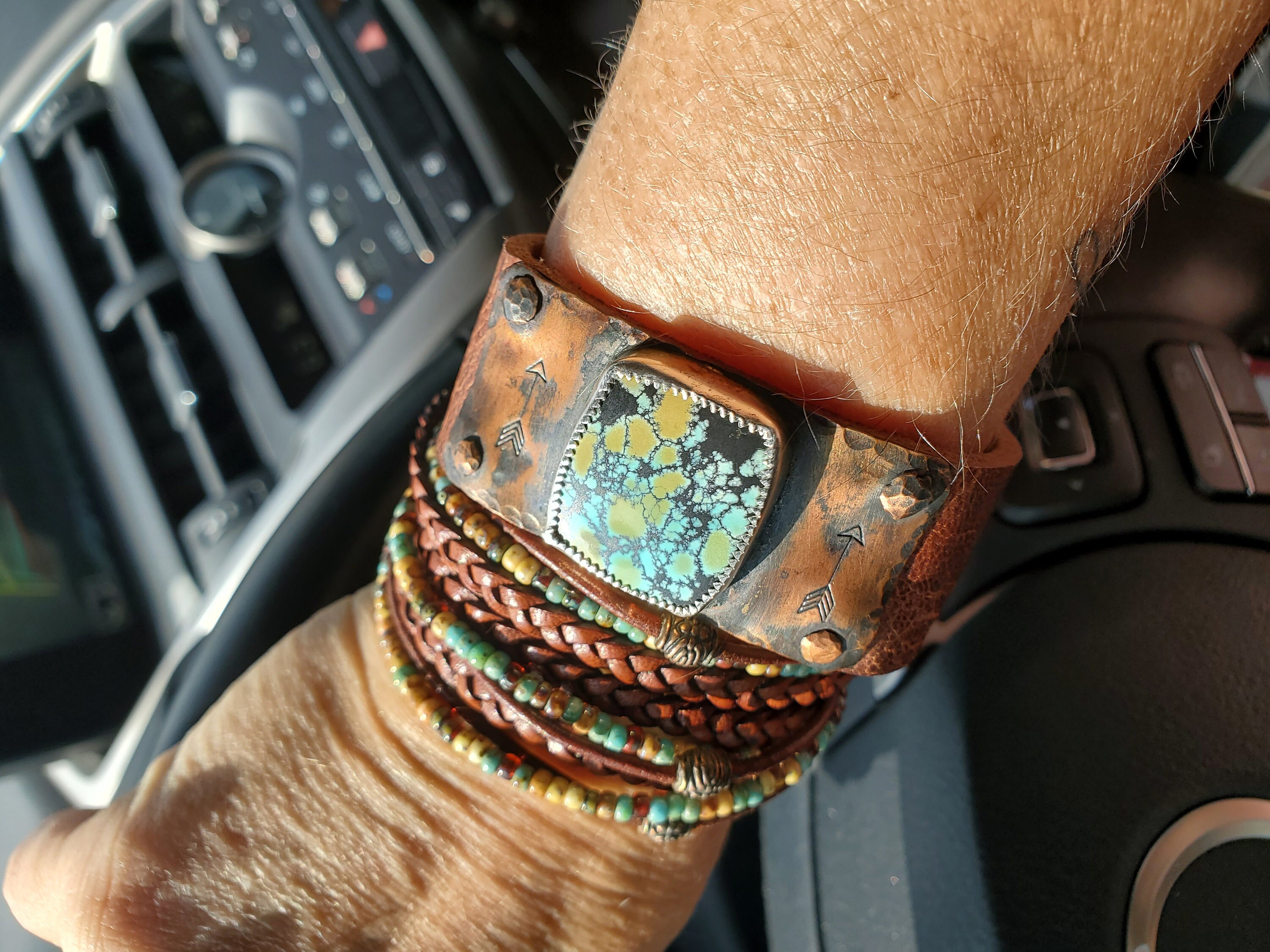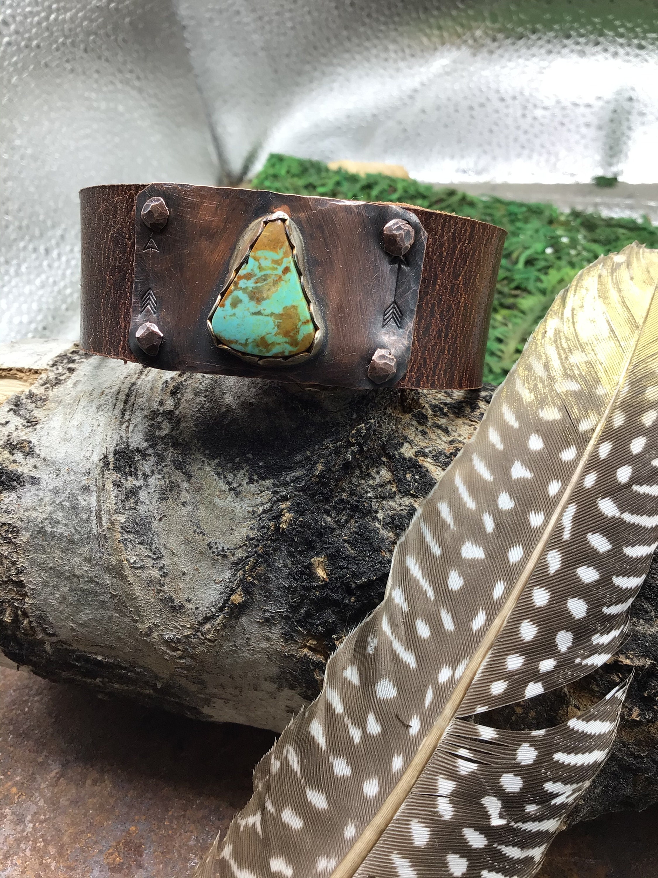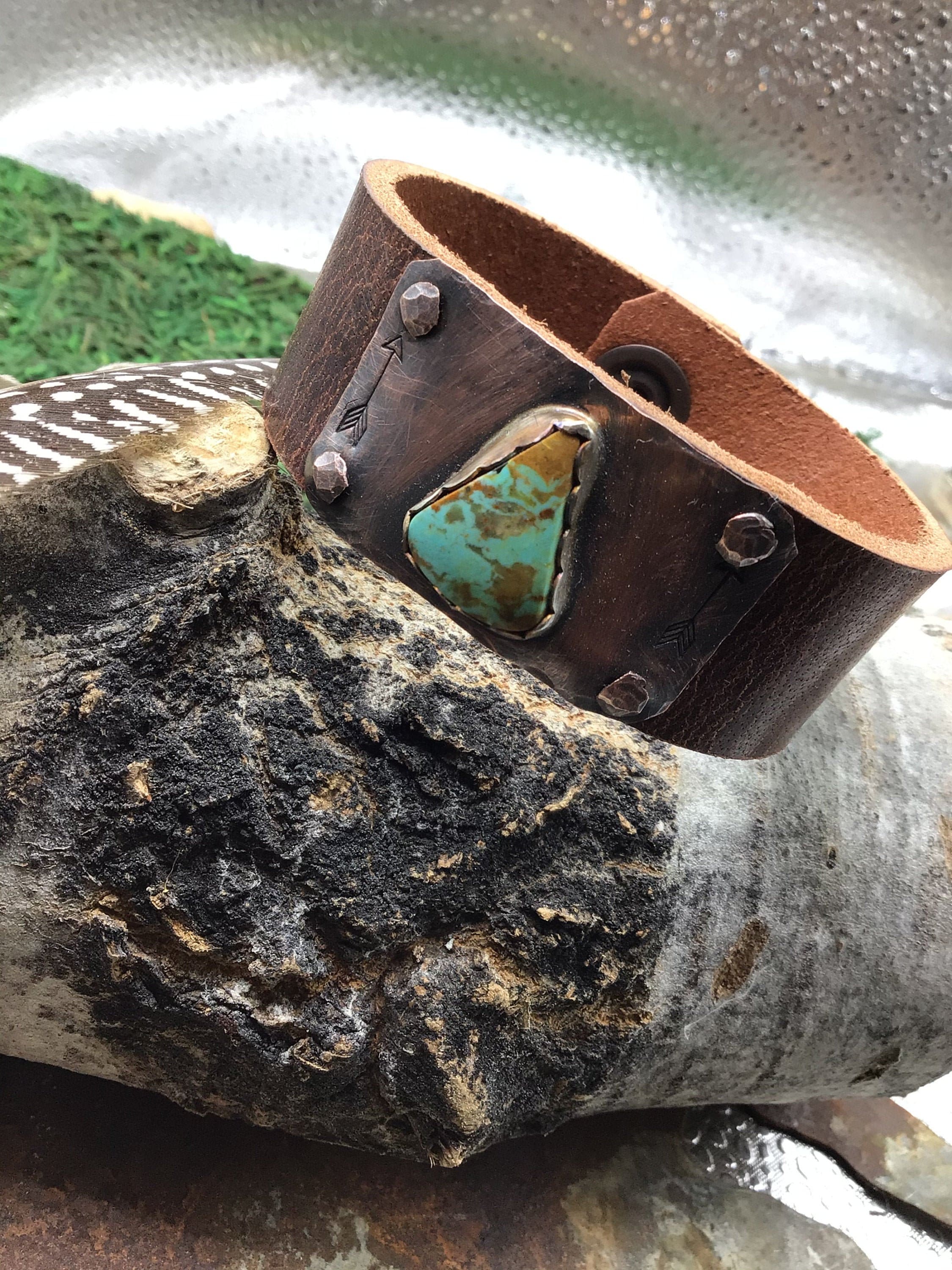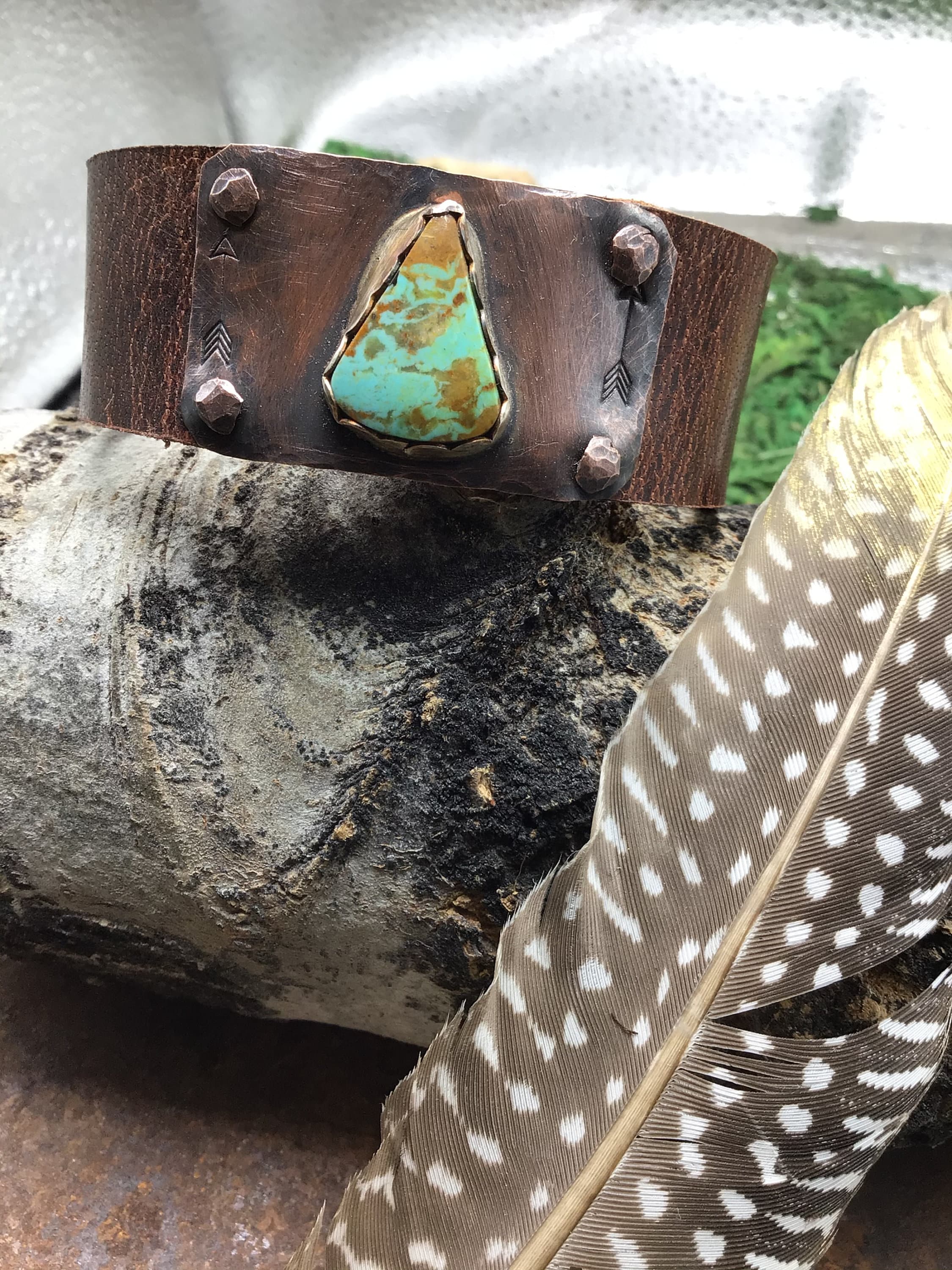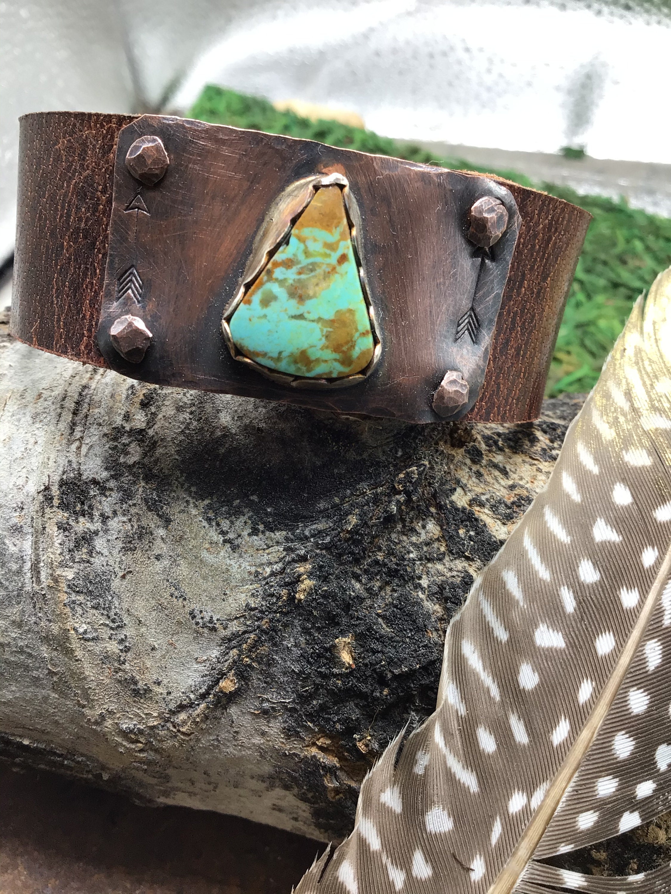 This sweet cuff is a custom order from Weathered Soul for my daughter’s birthday. I’m so happy how it turned out!! It packs a big punch for a dainty cuff! The turquoise stones are brilliant and the perfect trio with quality leather and fun sunshine and arrow details. I’m very excited for my daughters reaction! Thank you Jenni!